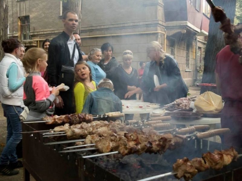 Изюминкой мероприятия стало бесплатное угощение обитателей двора шашлыком.
