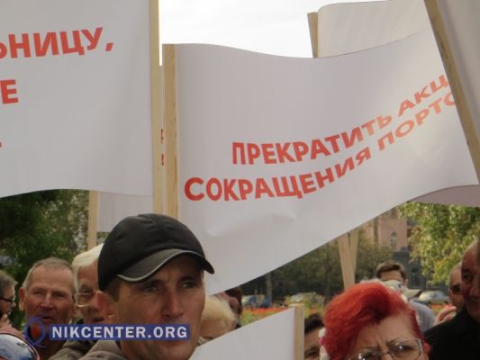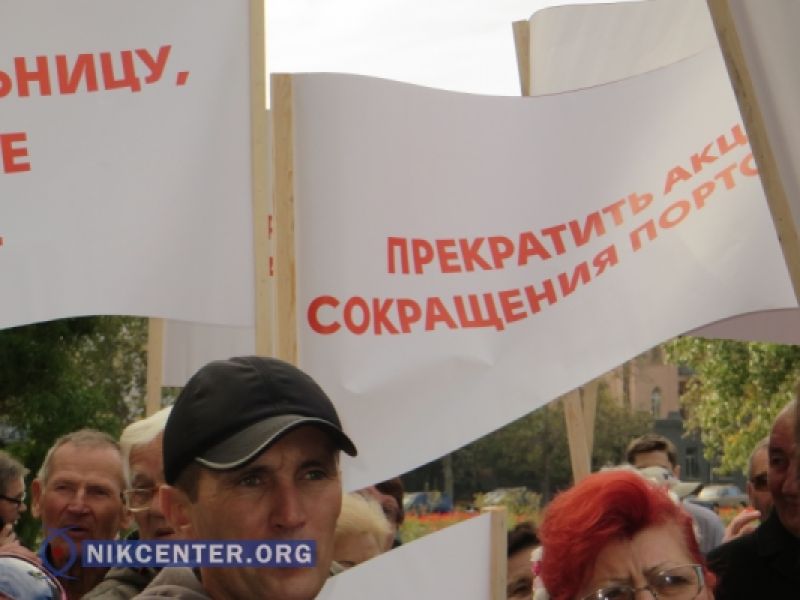 В субботу, 10 октября, перед зданием Николаевской ОГА собрались пикетчики, требуя уволить недавно назначенного начальника Николаевского морского порта Александра Попова. Среди основных лозунгов были: "Попов — руки прочь от больницы моряков", "Защитим нашу больницу, не позволим ее уничтожить", "Попов — торговец зап.частями — вон из порта", "Прекратить акции сокращения портовиков".