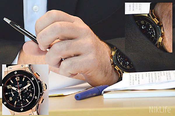 Так, депутат носит хронограф из 18-каратного розового золота Hublot Big Bang Gold Ceramic 44 mm 301.PB.131.RX. В интернете его можно купить за 33 тысячи 200 долларов (что по курсу НБУ составляет чуть больше 720 тысяч гривен).