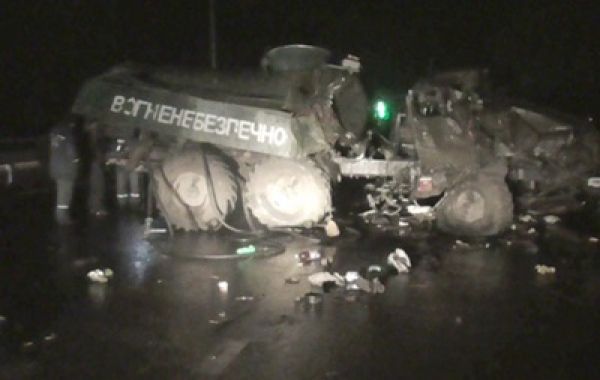 Предварительно установлено, что водитель автомобиля Урал с цистерной, который ехал в направлении Киева, столкнулся с тягачом Renault Magnum с цистерной, который стоял на обочине.
