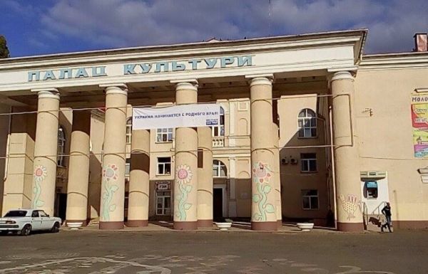 Так, на колоннах Дворца культуры «Молодежный» появился банер политической партии «Наш край».