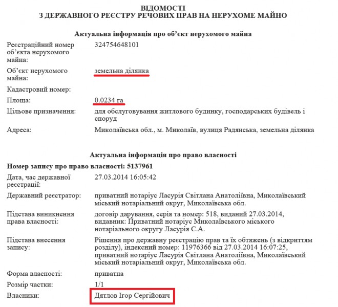 Так, согласно декларации за 2014 год, которую Дятлов подал в Николаевскую городскую избирательную комиссию, оппозиционер оказался бездомным, а среди недвижимости у него был задекларирован лишь механический ток площадью 28 тысяч 700 квадратных метров.