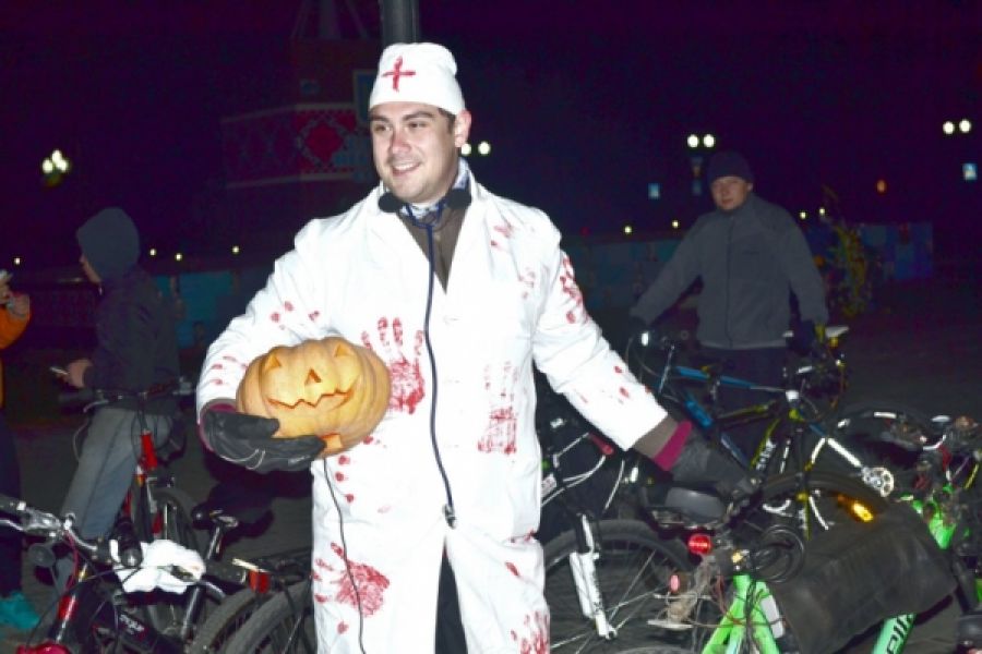 Традиционный хеллоуинский велопробег провели в Хэллоуин энтузиасты херсонского велодвижения.