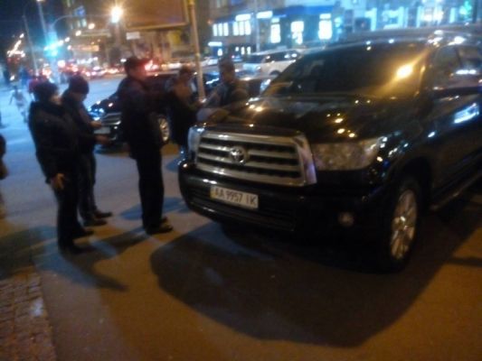 В Киеве на перекрестке улиц Саксаганского и Горького полиция составила протокол на автомобиль из кортежа мэра города Виталия Кличко.
