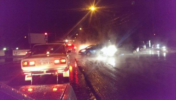 В Николаеве дорожники кладут асфальт в дождь
