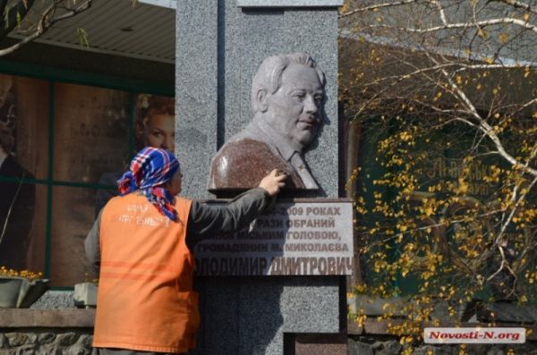 В Николаеве вандалы изуродовали мемориальную доску покойному мэру Чайке