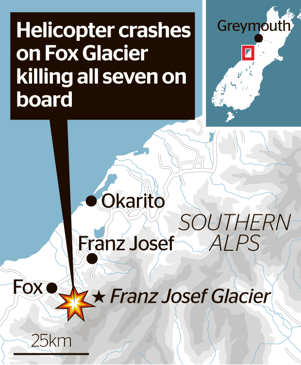 На Леднике Фокса в Новой Зеландии потерпел крушение туристический вертолет, в результате чего погибли шесть пассажиров и один пилот.