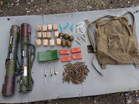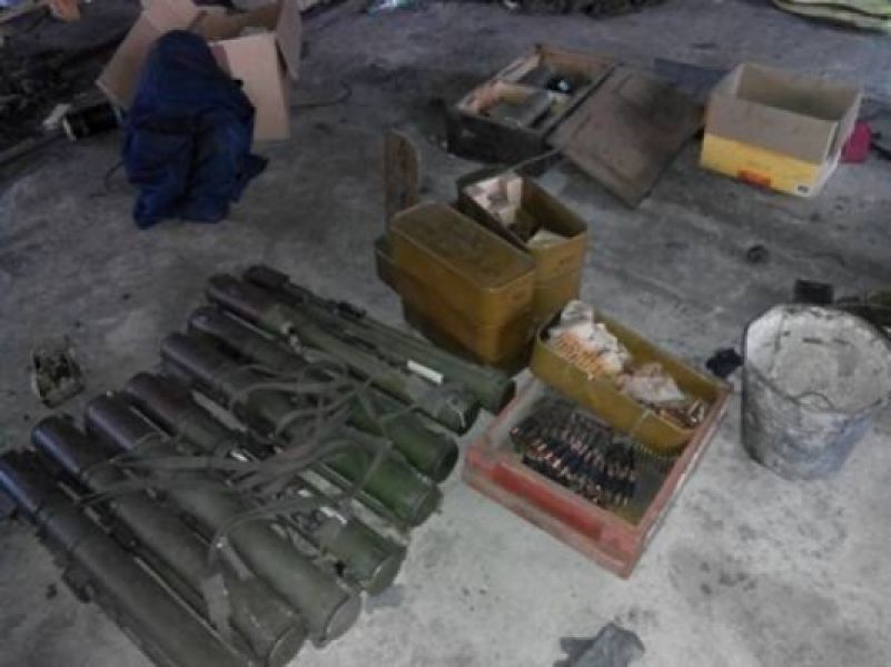 В заброшенных ангарах правоохранители изъяли семь 120 мм минометных мин, двадцать 82 мм минометных мин с запалами, 125 мм снаряд в танковой пушки, восемь гранатометов РПГ-22, два гранатомета РПГ-18, гранаты РГД-5, РГО и Ф-1 с запалами, четыре двухсотграммовые тротиловые шашки, противопехотная мина МОН-50, три капсюли-детонаторы, три электродетонатора, семь дымовых шашек (3 дБ), большое количество цинковых ящиков с патронами различного калибра и огнепроводный шнур.