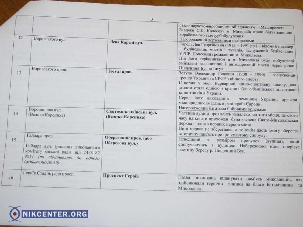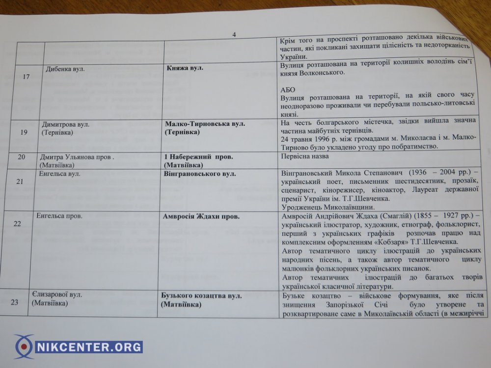 В частности, комиссия предложила переименовать Ленинский район города в Ингульский, проспект Героев Сталинграда в проспект Героев и т.д.