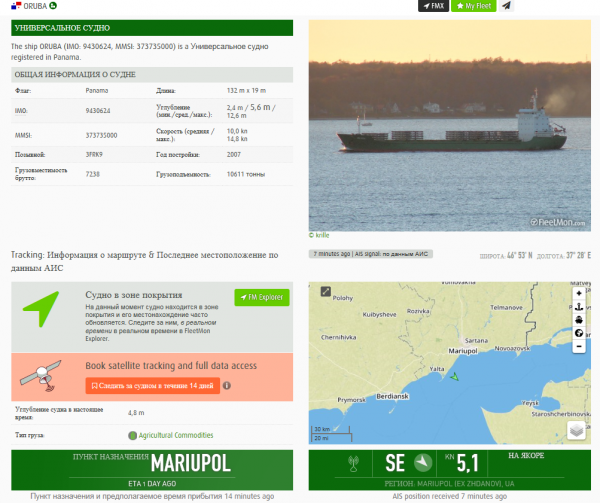 В то же время, в пресс-службе Мариупольского морского торгового порта i24.com.ua уточнили, что это судно вышло на рейд и стоит в ожидании оплаты портовых сборов.
