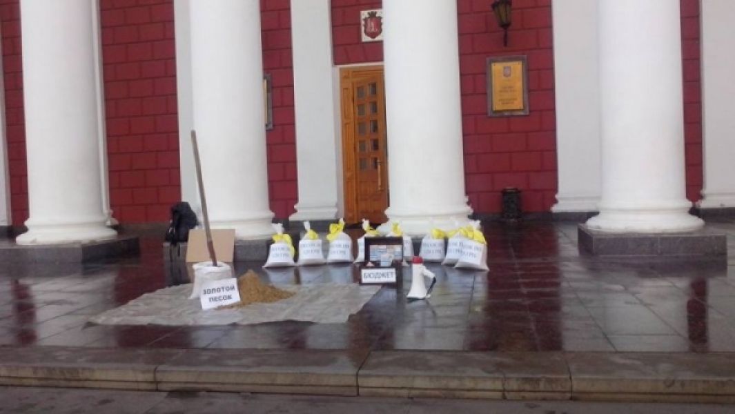 Так, под здание горсовета перед аппаратным совещанием в мэрии «демальянсовцы» принесли мешки с песком и надписью «Штаб разворовывания городского бюджета».