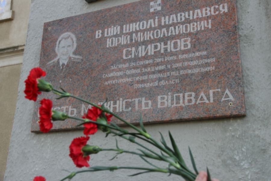 8 декабря в николаевской средней школе №4 им. Б.И.Молчанова открыли памятную доску в честь бывшего воспитанника Юрия Смирнова, который погиб в августе 2014 года, исполняя служебно-боевые задания в зоне проведения антитеррористической операции под поселком Войковским Донецкой области.