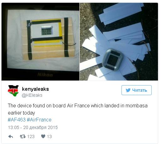 Boeing 777 компании Air France, выполнявший рейс из Маврикия в Париж, в ночь на 20 декабря совершил вынужденную посадку в кенийском городе Момбаса после обнаружения на борту подозрительного устройства.