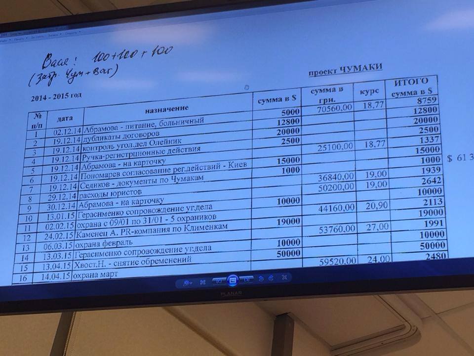 Кроме того, обнаружены записи, где зафиксированы указания зарплат сотрудникам райотделов милиции, судьям районных судов Днепропетровска, а также других судов.