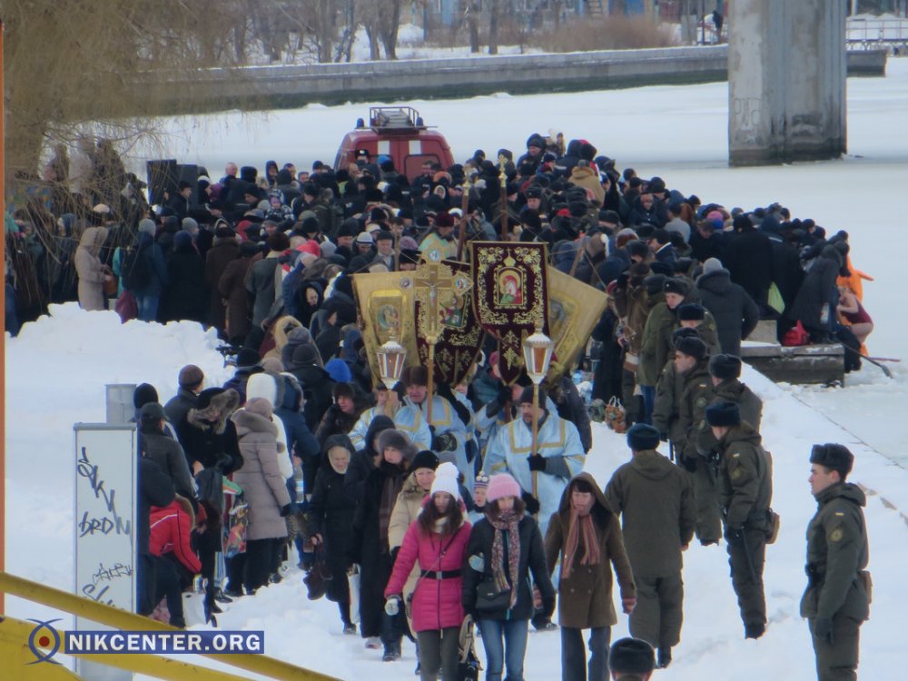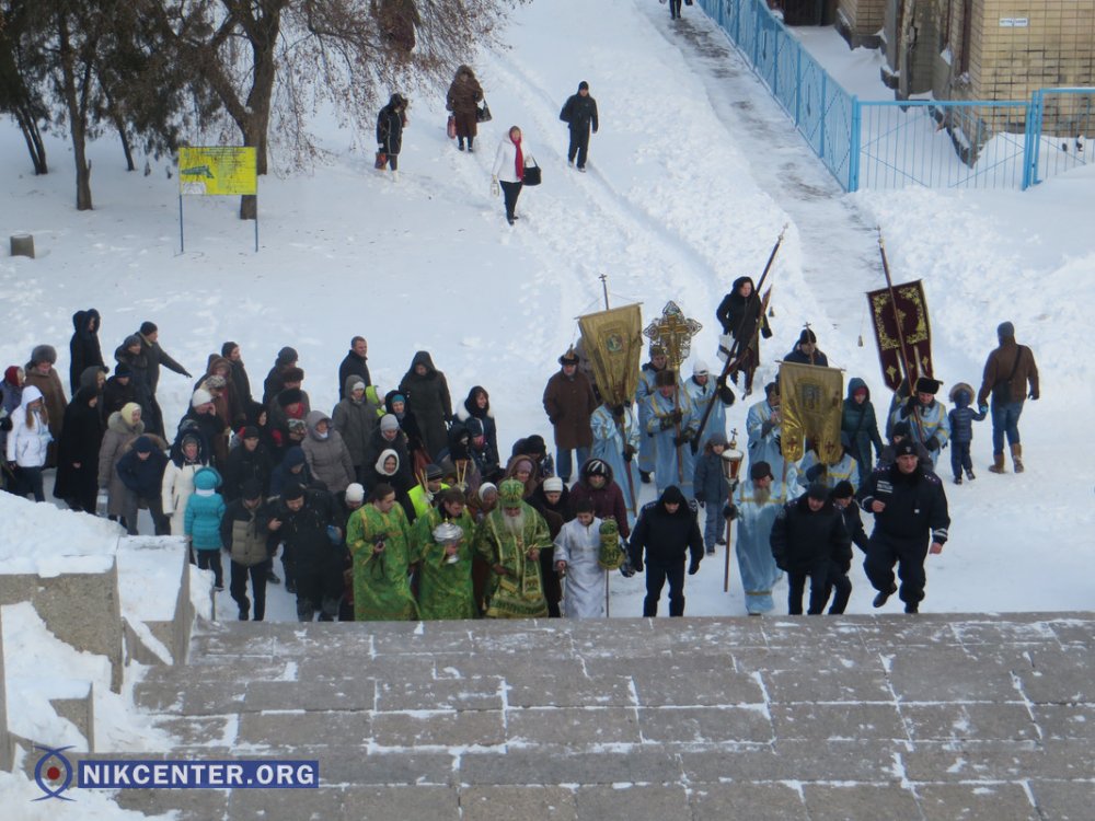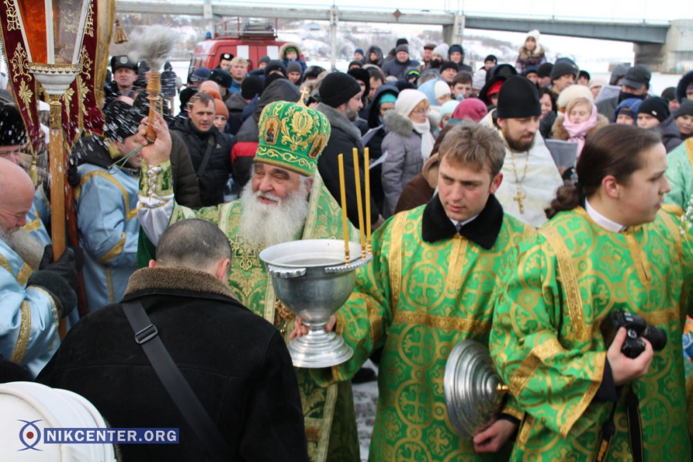 После праздничного богослужения в Кафедральном соборе Рождества Пресвятой Богородицы митрополит Николаевский и Вознесенский Питирим возглавил традиционный крестный ход к Набережной реки Ингул, где совершил освящение воды. На реке Ингул собрались более 500 человек.