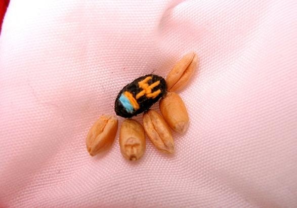 — Я взяла первое попавшееся зернышко, надела лупу с креплением на голову и приступила к работе, — вспоминает Меленчук. — Изначально обшила черным мулине зерно и тонкими катушечными нитками нашила флаг нашей страны.