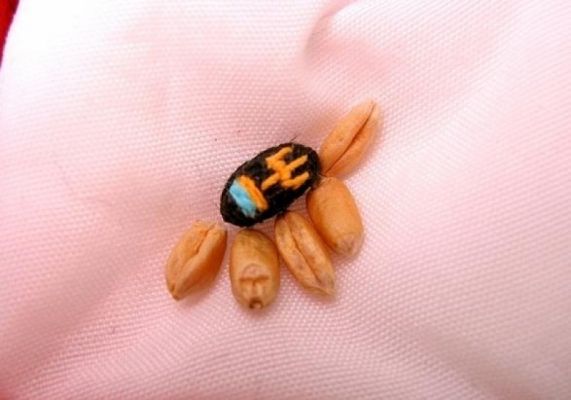 Как-то херсончанка листала журнал по рукоделию и увидела там крохотную вышивку украинского мастера, который изобразил герб на полотне площадью всего в сантиметр. После этого Ирина загорелась идеей тоже сделать что-нибудь миниатюрное. Зернышко как материал для творчества стало первым, что пришло на ум.