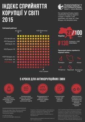 Украина заняла 130 место в рейтинге восприятия коррупции CPI 2015. Эту статистику обнародовала международная организация Transparency International.