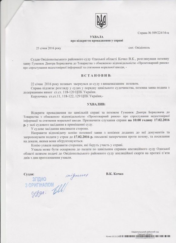 Руководитель ОО "Самооборона Майдана Одессы" Дмитрий Гуменюк обратился в Овидиопольский районный суд с иском для опровержения недостоверной информации и взыскании морального ущерба с протоварного рынка "7 км".