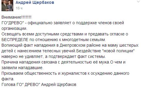 «Причина нападения связана с деятельностью её мужа. О чем и заявили нападавшие», — пишет он.