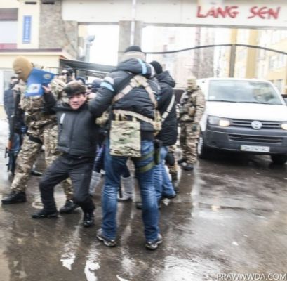 Причиной потасовки стал тот факт, что у одного из обыскиваемых изъяли 800 тыс. гривен. При обыске сотрудники СБУ демонтировали двери квартир представителей диаспоры.