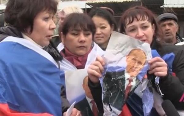 Женщины на видео призвали Путина "спасти их от беспредела". "Я реально думала, что мы бежим от фашизма, от "бандеровцев", а реально получается, что мы прибежали к другим фашистам", — заявила одна из активисток, а затем на коленях попросила помощи у президента РФ.