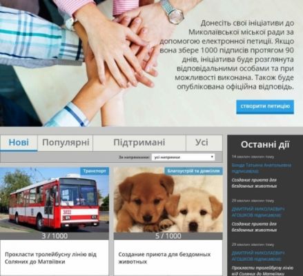 На сайте Николаевского горсовета запустили «электронные петиции»