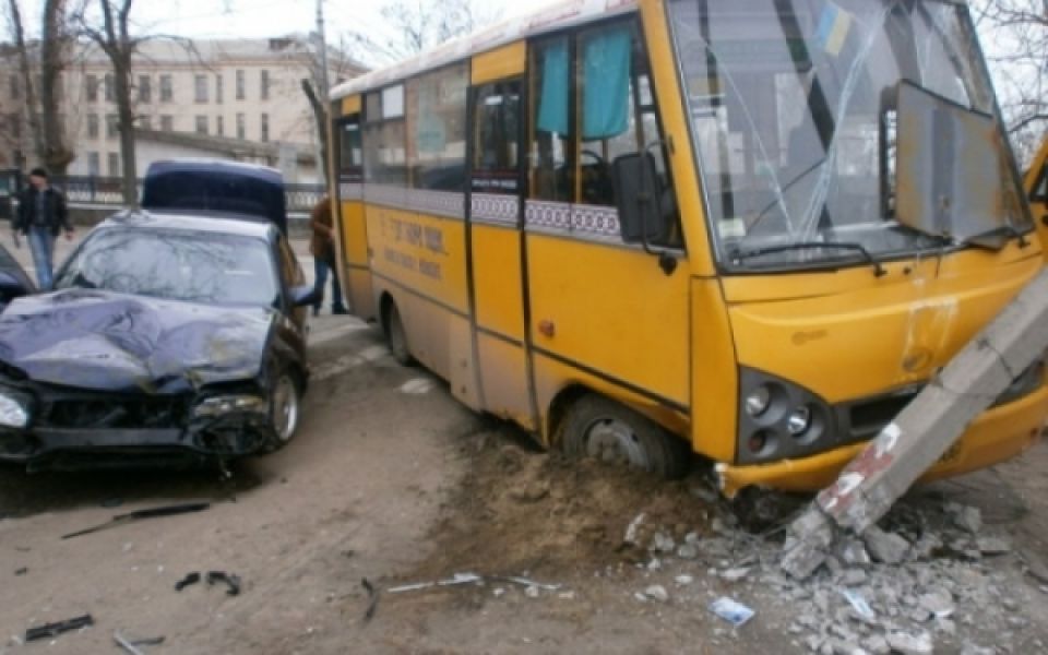 В городе на Херсонщине легковушка «впечатала» в столб пассажирский автобус