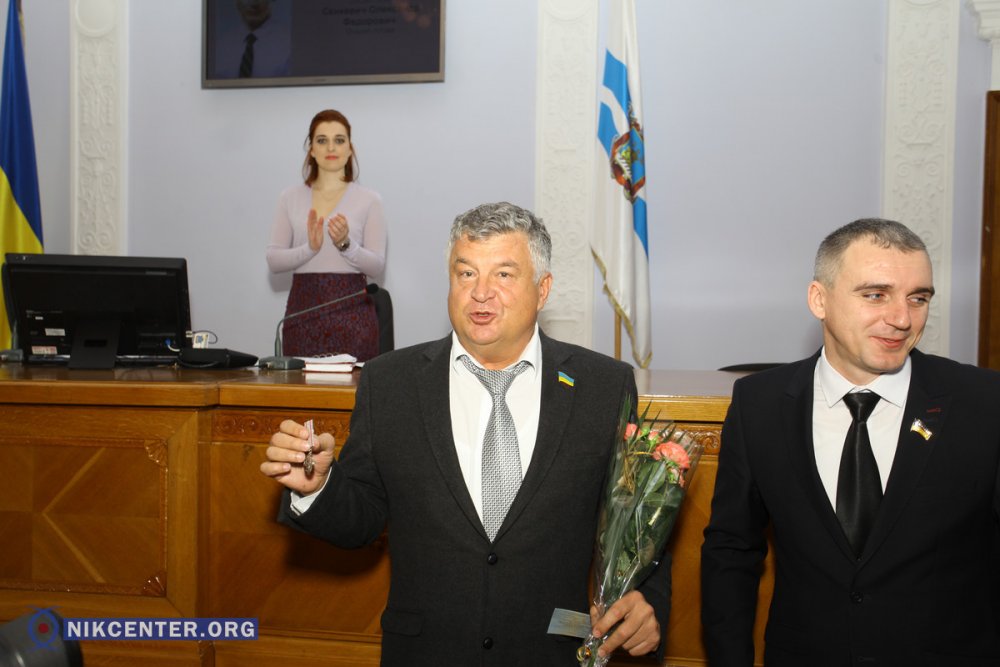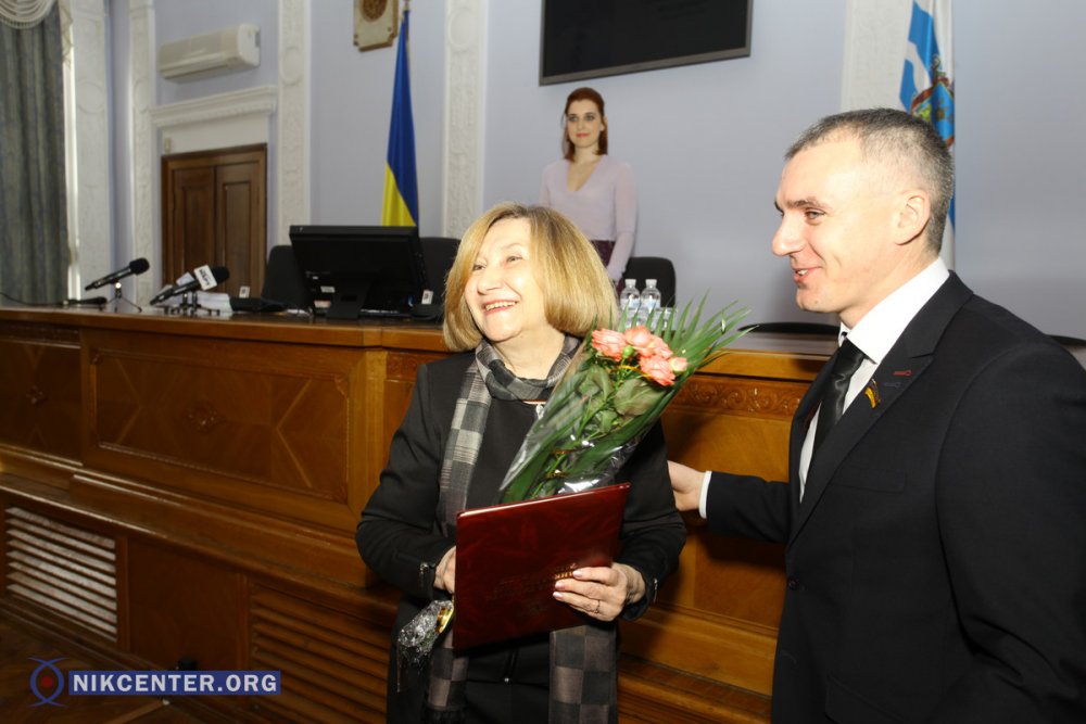 Отметим, сегодняшняя сессия началась с награждений: мэр Сенкевич вручил почетную грамоту Николаевского горсовета депутату Татьяне Сусловой и медаль в честь вывода войск из Афганистана депутату Олегу Грипасу.