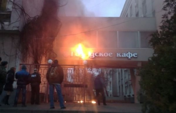 В Херсоне загорелась вывеска кафе, расположенного в здании мэрии