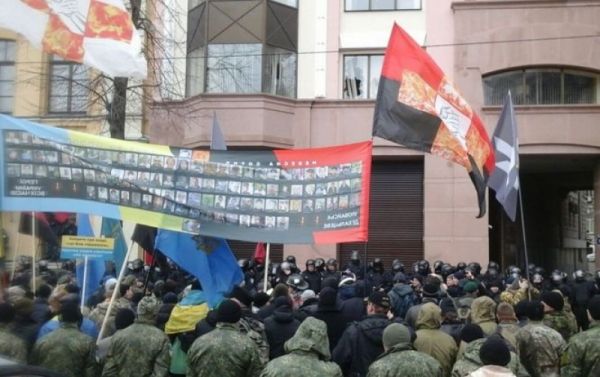 По данным СМИ, камни в окна здания бросали представители ОУН. Были слышны взрывы петард, а также лозунги с обвинениями в адрес бизнесмена.