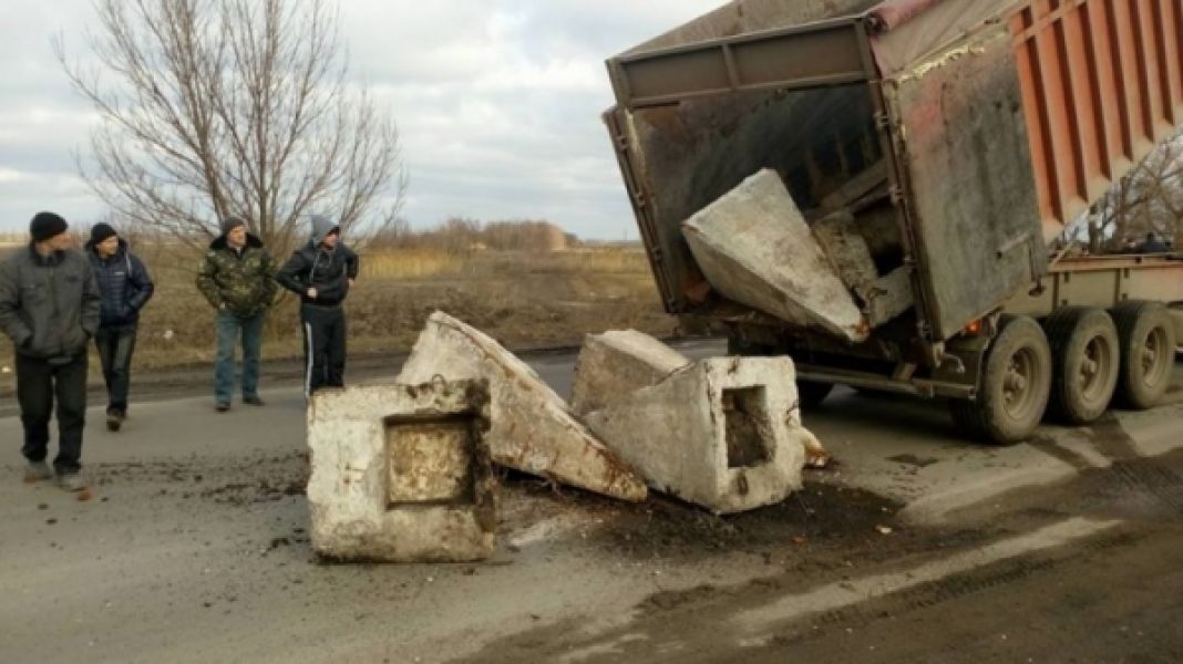 Жители Нового Буга перекрыли трассу «Николаев-Днепропетровск» бетонными блоками