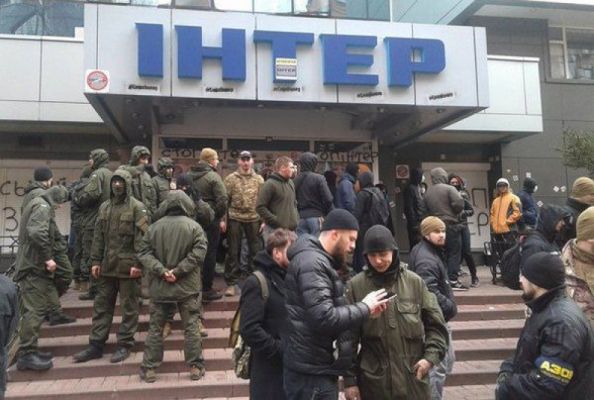 «Азовцы» заблокировали все входы в здание телеканала «Интер»