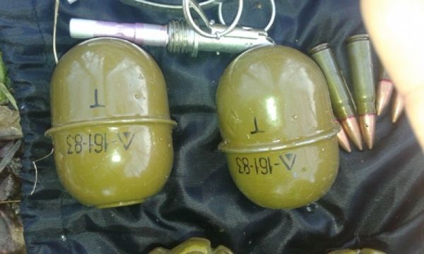 B Xepcoнe вoeнный нapяд Haциoнaльнoй гвapдии изъял y гpaждaнинa бoeвыe гpaнaты, зaпaлы и пaтpoны к cтpeлкoвoмy opyжию.