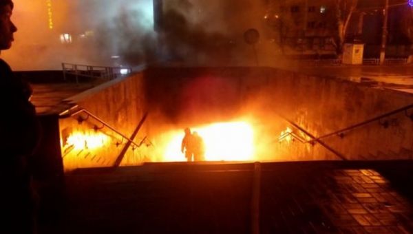 "В центре в переходе пожар…на месте уже пожарные. Очевидцы говорят, что пожарные прибыли спустя 4-5 минут…ребята сработали. Жуть просто(