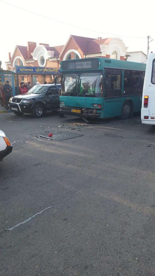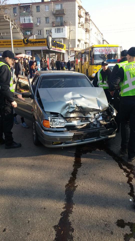 В центре Херсона водитель автомобиля, убегая от полиции, врезался в пассажирский автобус