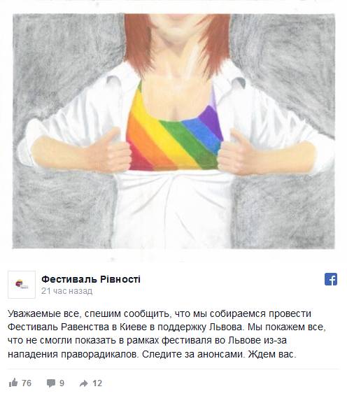 Напомним, во Львове суд запретил проведение любых акций 19 марта, среди которых был и ЛГБТ-фестиваль.