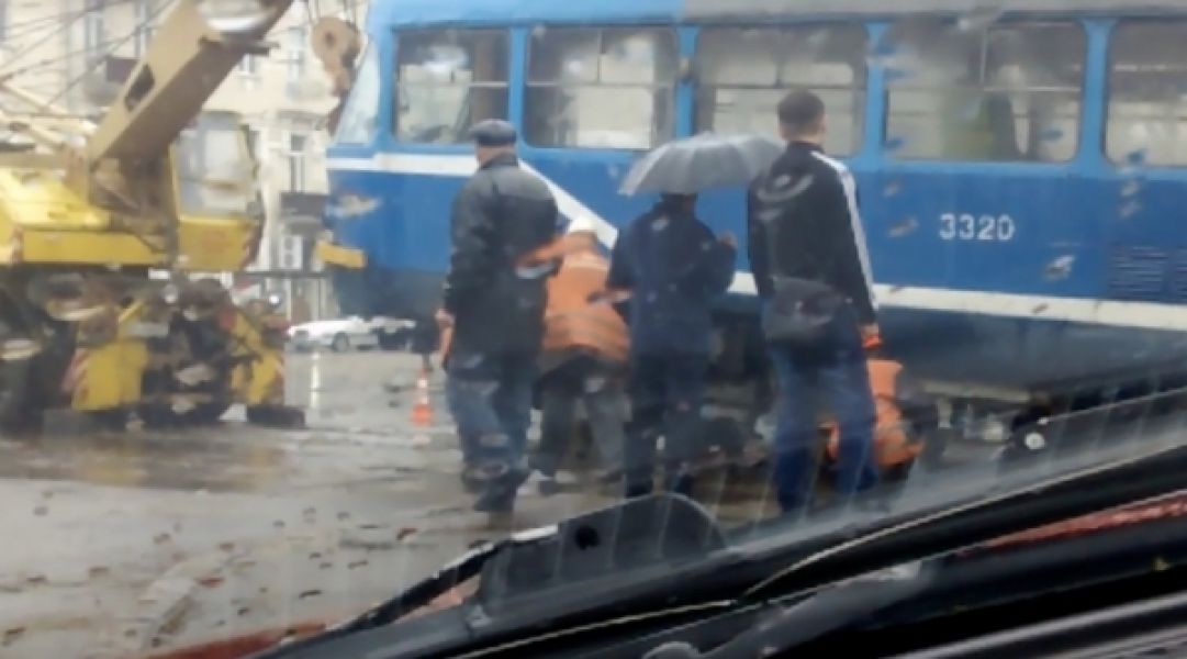 По городу случилось уже больше шести ДТП. Дважды с рельсов сходил трамвай. На трамвайных путях работал кран, которому удалось вернуть на место «уплывшие» трамваи.
