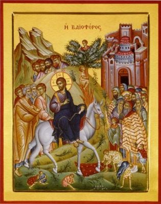 По древней традиции евреи приветствовали Спасителя с пальмовыми ветвями в руках. Так чествовали царей-победителей, вернувшихся с военного похода.