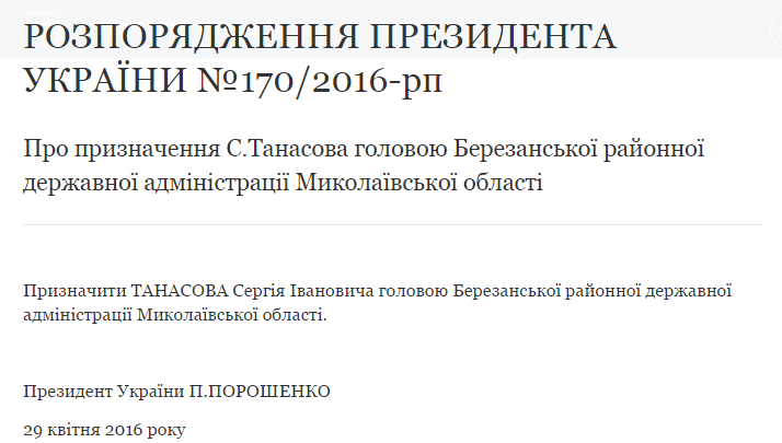 Порошенко назначил депутата Николаевского горсовета главой Березанской райгосадминистрации 2016-04-29 Николаев, Политика, Региональные новости Президент Украины Петр Порошенко назначил депутата Николаевского горсовета от партии "Блок Петра Порошенко", "киборга" Сергея Танасова главой Березанской райгосадминистрации. Соответствующее распоряжение подписано сегодня, 29 апреля. Previous Next