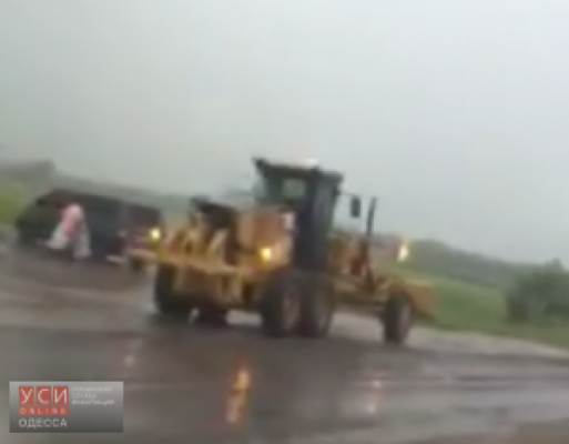 Дорогу Одесса-Рени асфальтируют под проливным дождем