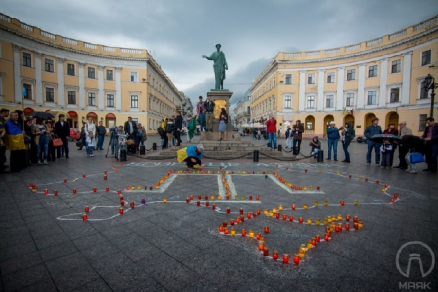 Одесситы возле памятника Дюку нарисовали карту Украины с символом крымских татар «Тарак-тамга» и зажгли лампадки.
