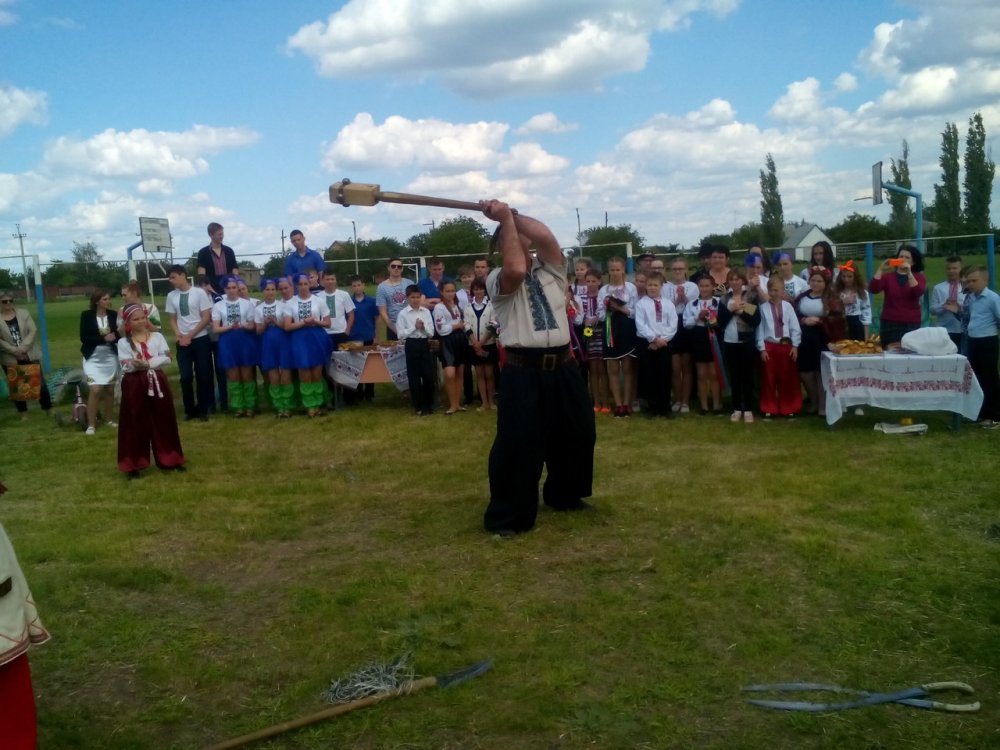 Затем школьники дарили зрителям свои таланты в пении и танцах. Примечательным было то, что дети выступали со взрослыми. Родители с удовольствием танцевали и пели вместе с детьми. Казаки, в свою очередь, устроили казацкие развлечения между школьниками. Активно и с удовольствием соревновались и взрослые, и дети. Завершили действо большим общим хороводом.