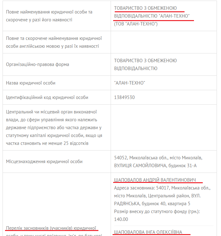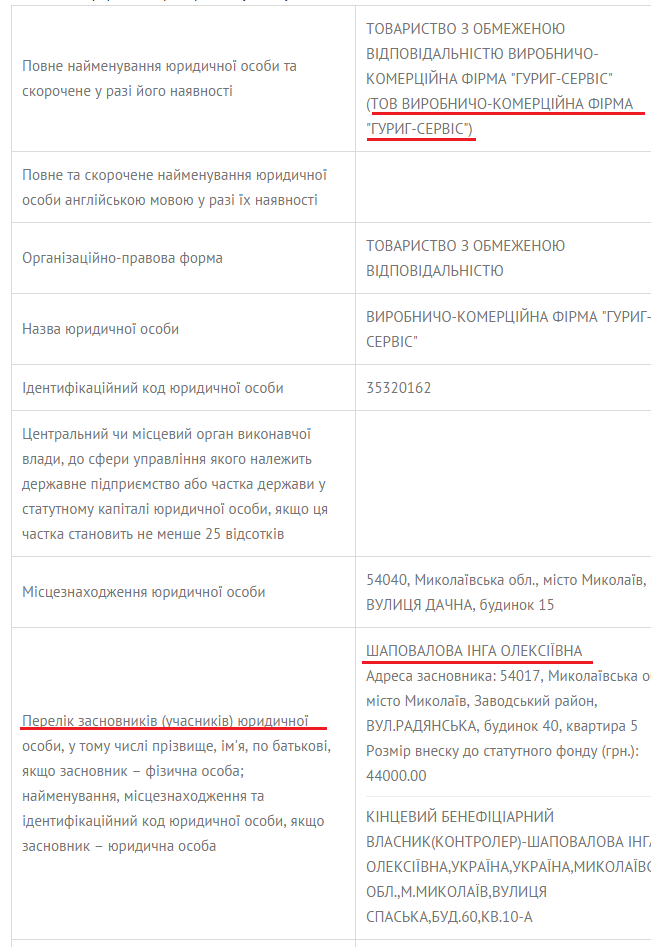 Согласно Госреестру юридических и физических лиц, оба предприятия принадлежат экс-депутату Николаевского горсовета VI созыва Инге Шаповаловой.