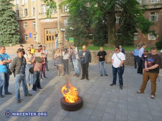 Возле Николаевской ОГА общественники подожгли шину и обратились к Президенту
