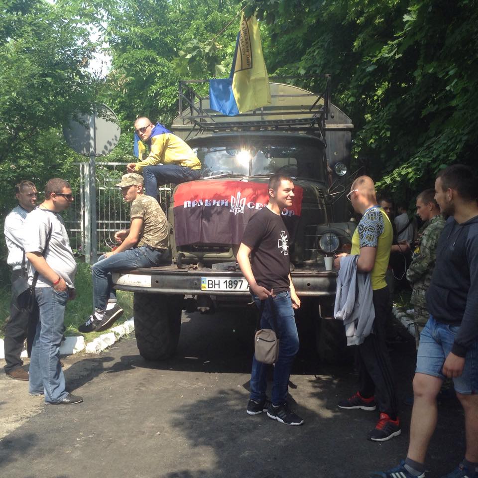 Сегодня, 27 мая, активисты "Правого сектора" и "Самообороны" заблокировали работу Малиновского районного суда Одессы, где было принято решение смягчить меру пресечения подсудимому по делу 2 мая Евгению Мефедову, гражданину РФ, и освободить его из-под стражи.