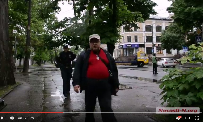 Пенсионера поддержал водитель «Паджеро». Разъяренного мужчину он попросил успокоиться, а сам заявил, что не позволит корреспонденту снимать место происшествия. Заверения о том, что есть законы Украины, он ответил, что не знает, «что такое Украина». Более того, он предложил подать на него в суд и сказал, что предоставит все данные о своей персоне, и продолжил угрозы — мол, если будет совершен хоть один снимок, он разобьет фотоаппарат.