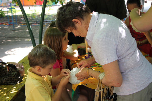 Отдельно проходили занятия по изготовлению цветов из гофрированной бумаги, тут к малышам присоединялись и взрослые.