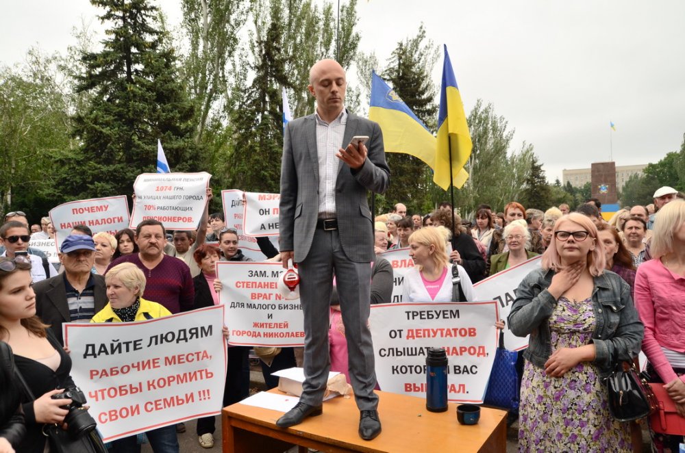 К митингующим вышел заместитель николаевского городского головы Юрий Степанец, однако возмущенные митингующие выступить ему не дали.