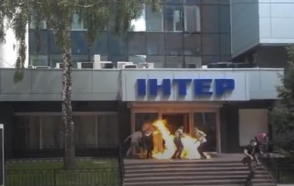 В Киеве подожгли вход в офис телеканала Интер